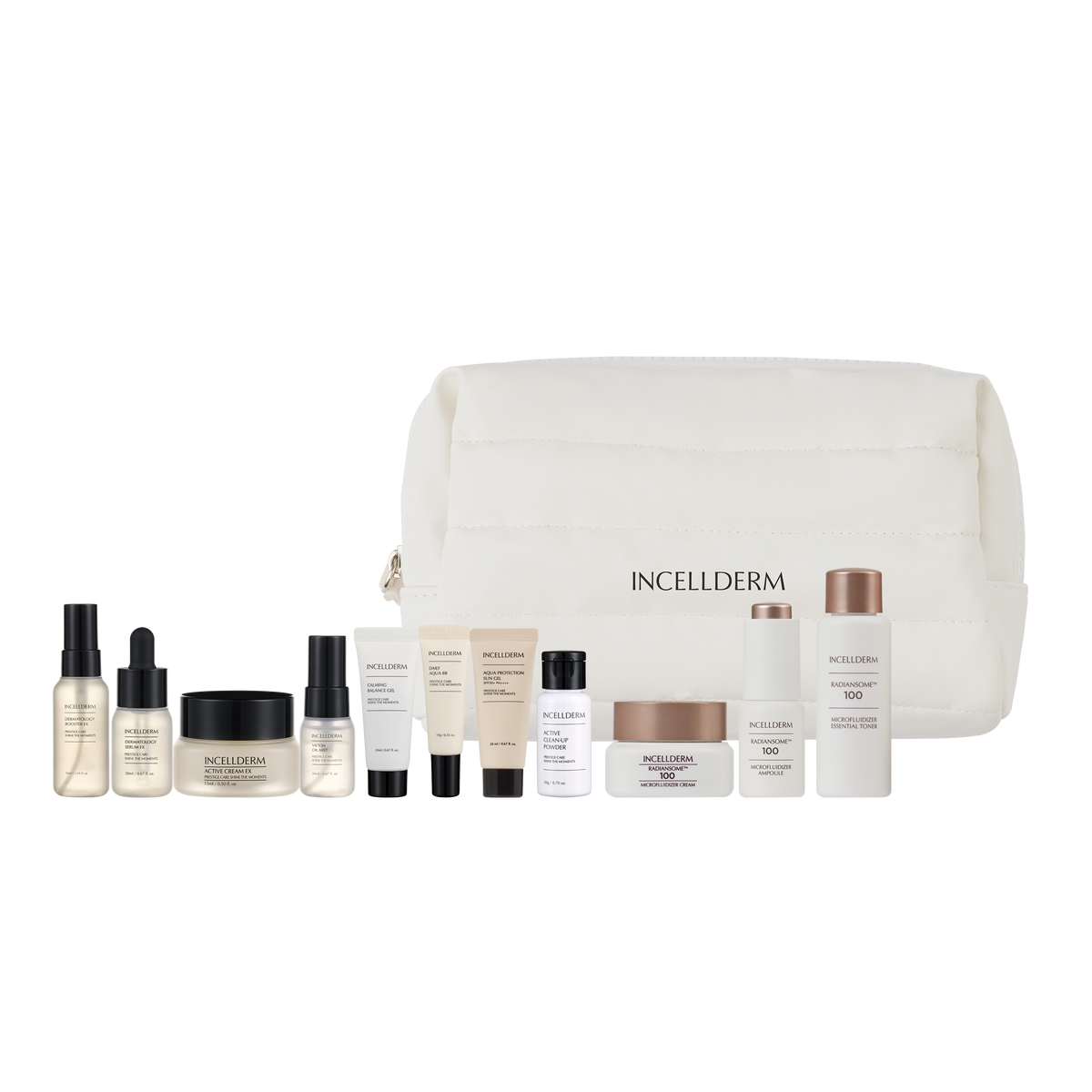 This shareable 11-piece set contains travel sizes of the bestsellers from our signature Expert + Radiasome 100line, all packaged in an elegant giftbox featuring simple how-to instructions and product benefits!!
